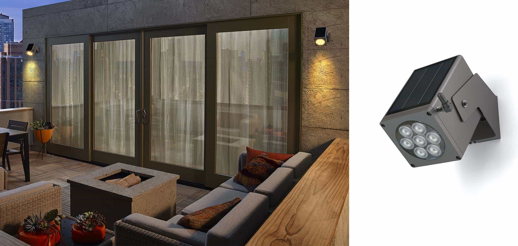 Kinkiet solarny reflektor projektowy – oświetlenie elewacji Solarny reflektor SLP-01ILUM w pełni nadaje się do oświetlenia elewacji budynków, wysokich balustrad, ulicy i tarasów.