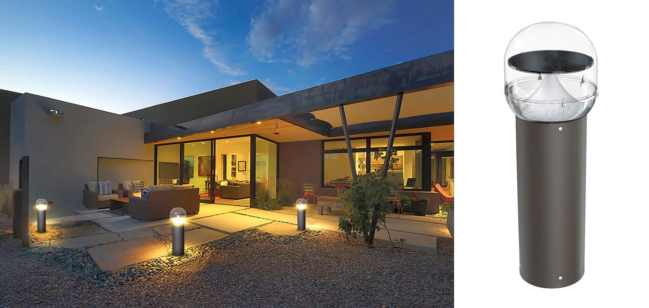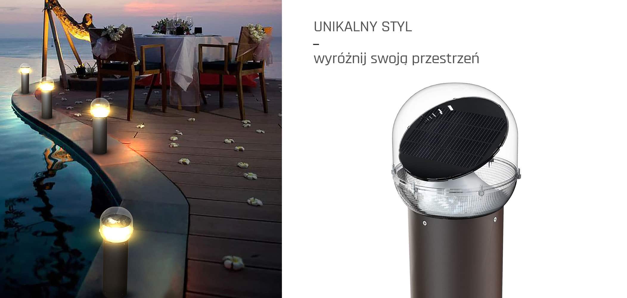 Solarna lampa projektowa SLP-01BUL z obrotowym panelem solarnym to idealne oświetlenie do zastosowania w miejskich i przydomowych przestrzeniach.