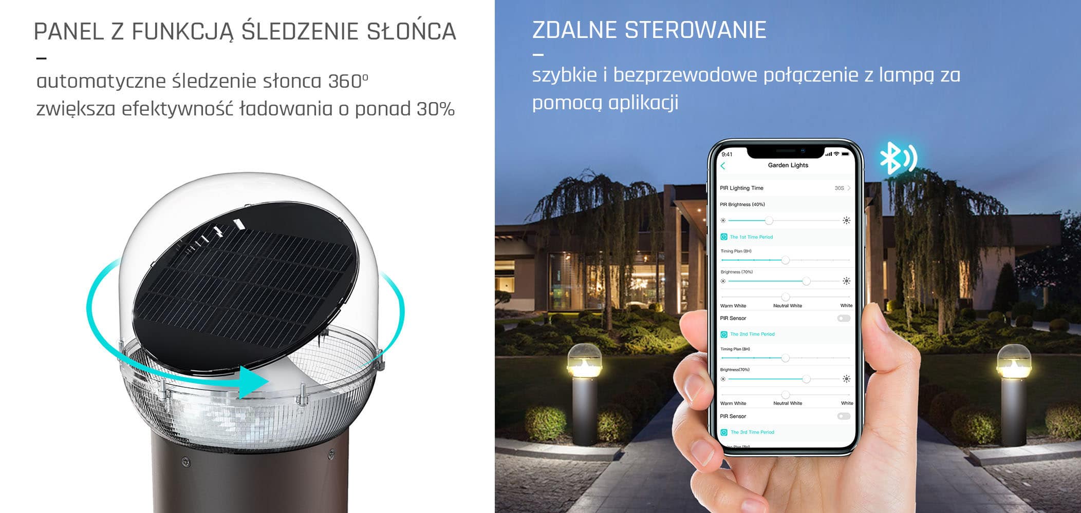 Lampa SLP-01BUL wykonana jest z najwyższej jakości aluminium i tworzywa odpornego na warunki atmosferyczne. Sterowanie lampą możliwe jest przez aplikację, która pozwala na dostosowanie pracy do własnych preferencji. Ładowanie lampy odbywa się poprzez energię słoneczną. Automatyczny, obrotowy panel wyszuka najlepszy możliwy punkt ustawienia do pobrania energii ze słońca, tak by najefektywniej naładować baterię. Lampa znajdzie zastosowanie jako oświetlenie dróg miejskich oraz prywatnych, a jej wysoka odporność zagwarantuje bezawaryjną pracę na lata.