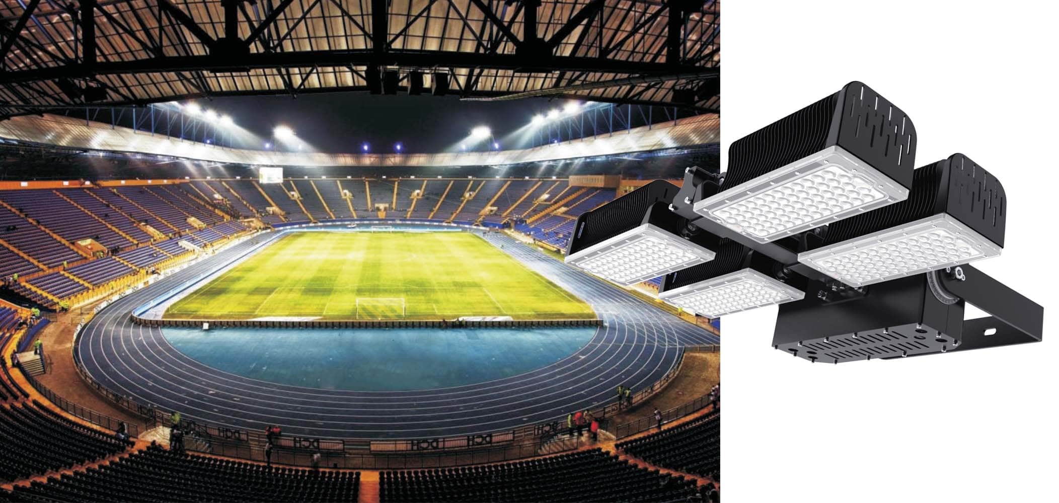 Lampa stadionowa HSC-480W LED to modułowa lampa cechująca się wysoką wydajnością oraz odpowiednimi kątami świecenia, dzięki czemu perfekcyjnie sprawdzi się jako oświetlenie stadionowe oraz przemysłowe typu HighBay.